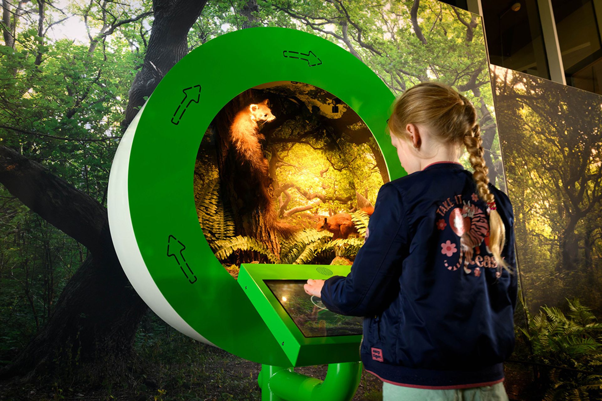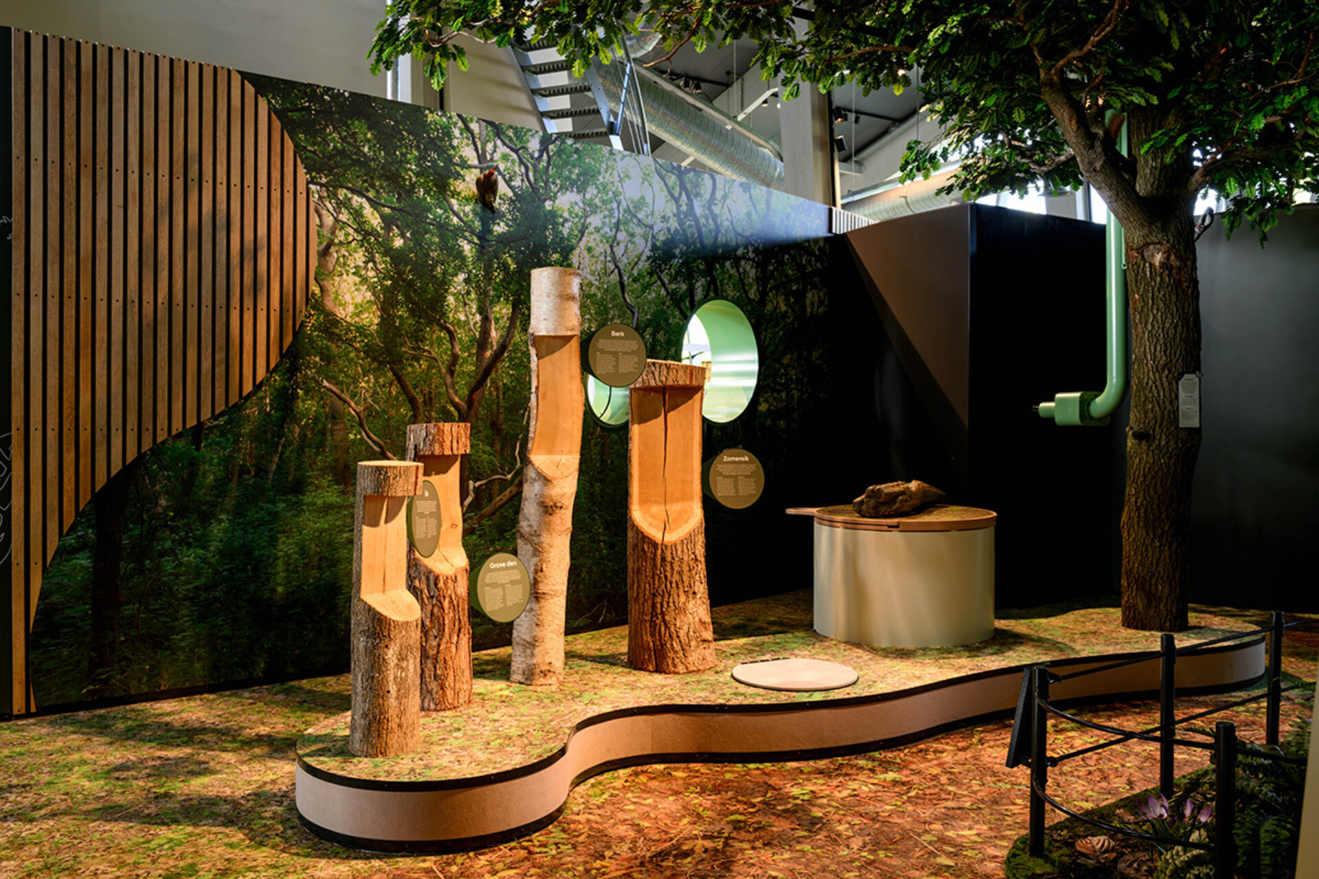 Looking at this world differently helps you find the connection between animals, the landscape and nature. Working in collaboration with Xpex, we have created the concept in a completely new design in the Visitor Centre, of both the permanent display and the shop. Along with the concept, we have also created the spatial and graphic design, a series of animated films and various play concepts.