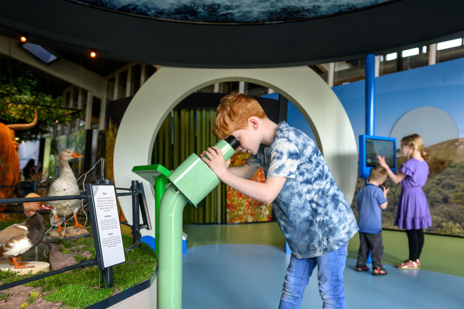 Inside the Visitor Centre, all your senses are stimulated: you experience the night-time sounds and smells of the forest, feel the wind on the beach ridge, stroke the coat of a Highland cow or look through the eyes of a hawk.