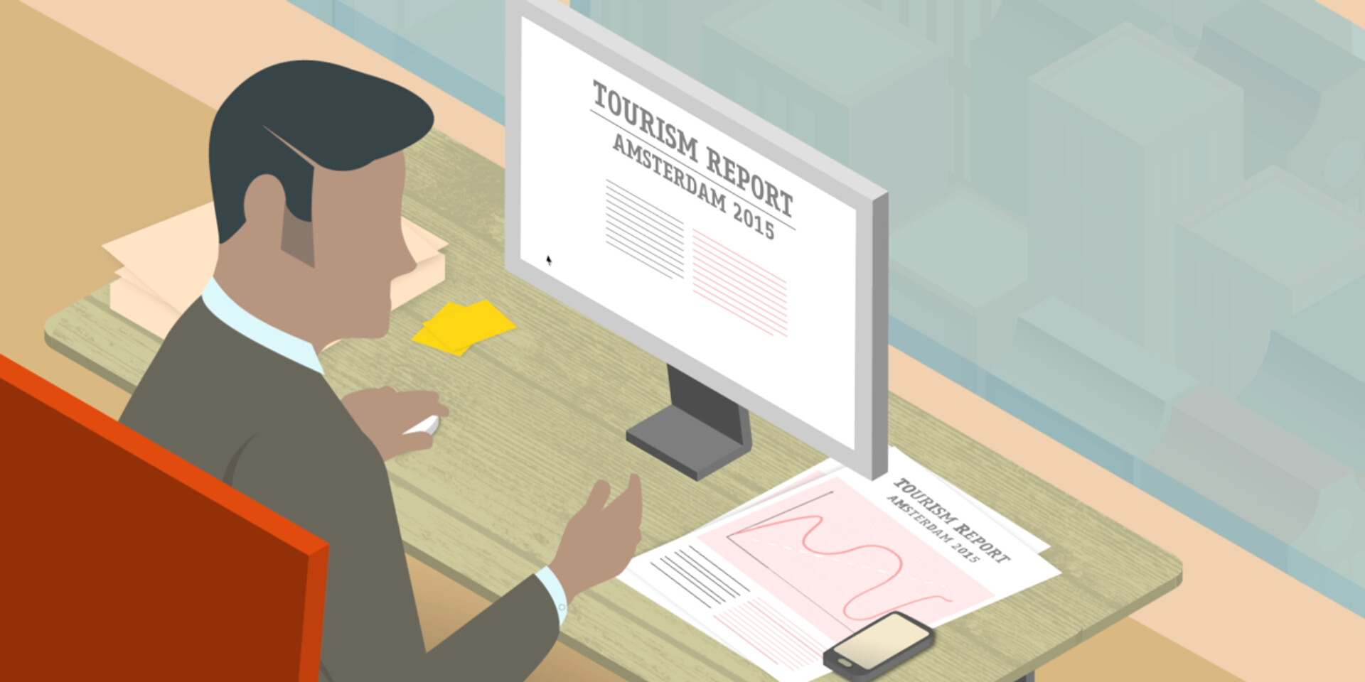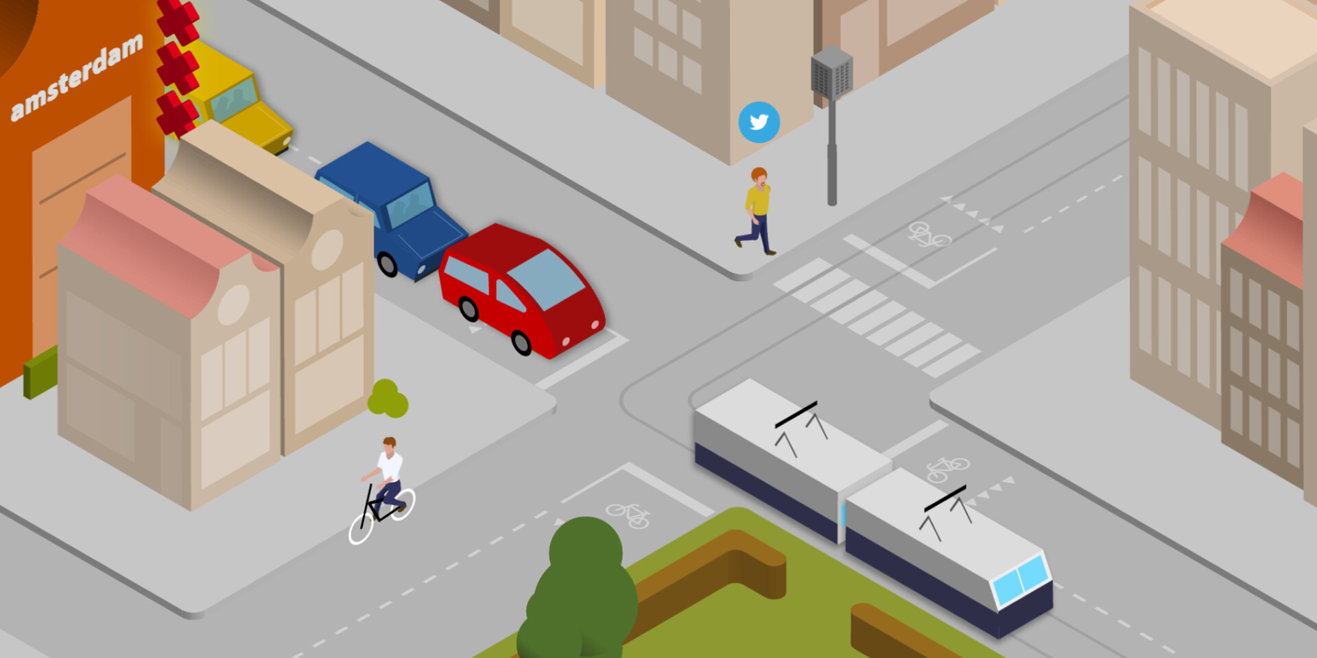 The research projects can have great impact on inhabitants and visitor of cities like Amsterdam, to increase accessibility and comprehensibility for a bigger audience we ‘translated’ four of these research projects. The complex concepts of the research studies are clearly explained in short animated films, illustrated with real-life examples. The isometric view keeps the image of the city clear, and the iconic animation style ensures a target-oriented information transfer. The alternating animation with filmed footage connects the illustrations with the real world, which is ultimately what the research is about.