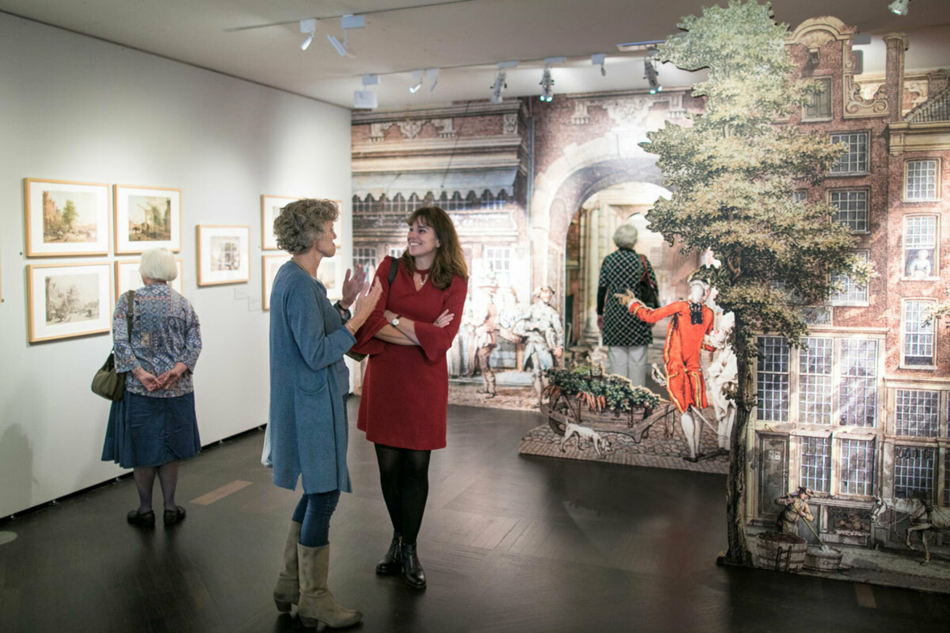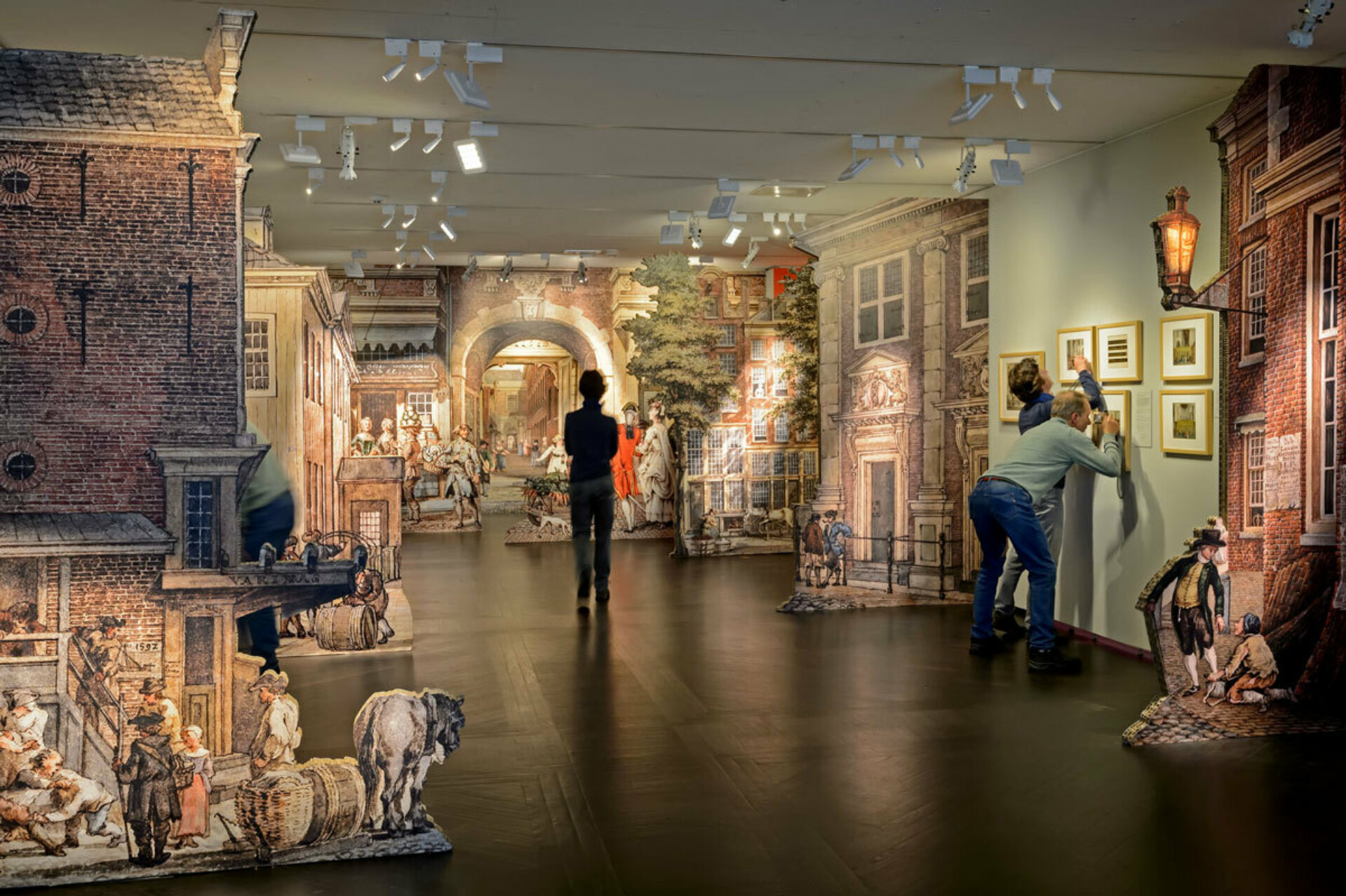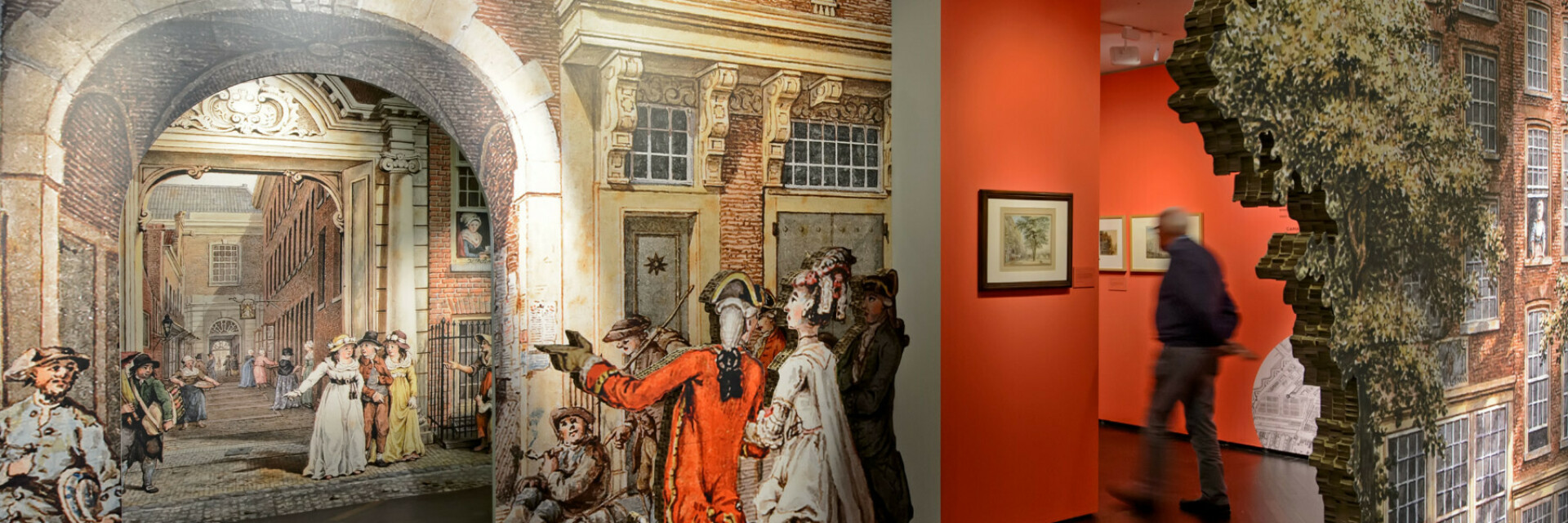 The 200 year old drawings of the city blend and merge with video footage of modern day life on a large projection surface, helping visitors recognize the spaces.